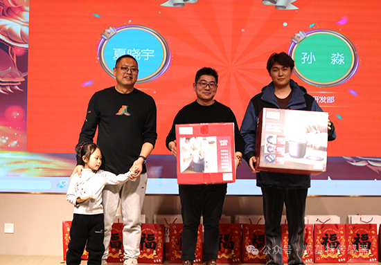 年會現(xiàn)場驚喜禮品接連掉落,互動大屏氣氛嗨翻全場,一輪又一輪激動人心的幸運抽獎,頻頻引爆年會氣氛。空氣炸鍋、松下暖風(fēng)機、莫比智能橢圓機等各種獎項不斷放送,現(xiàn)場驚喜連連,熱鬧非凡!