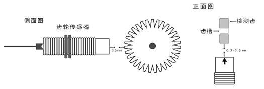 ◆ 安裝時(shí)傳感器的方向標(biāo)志線及檢測面要正對(duì)齒輪的中心。